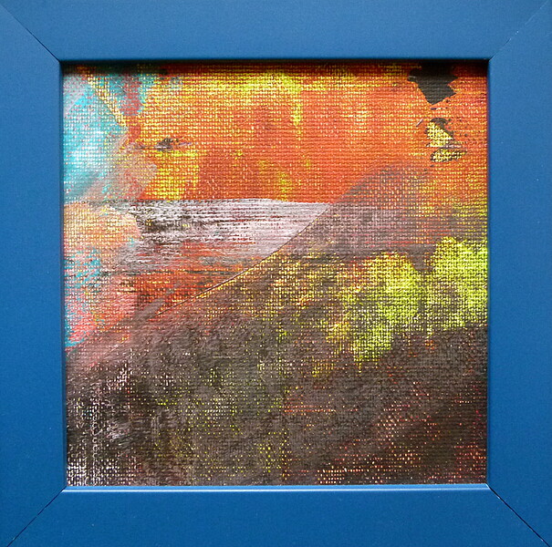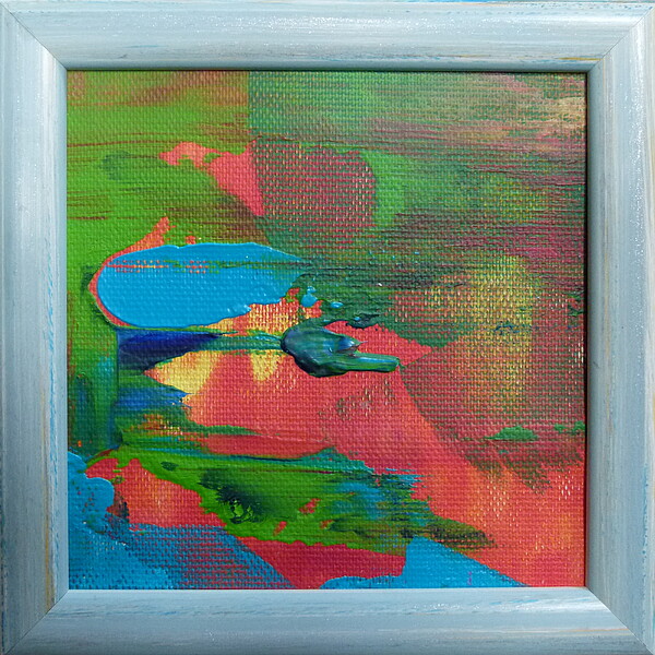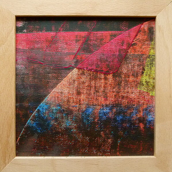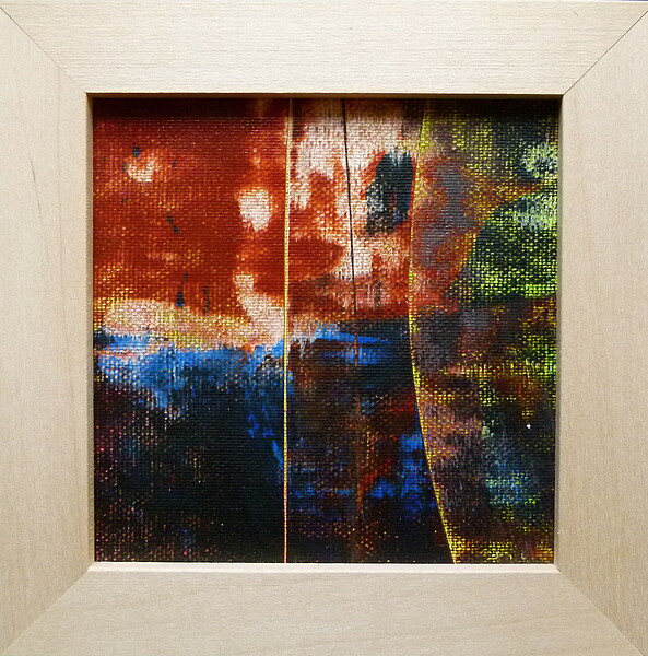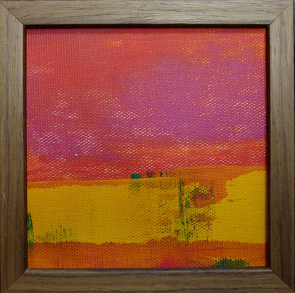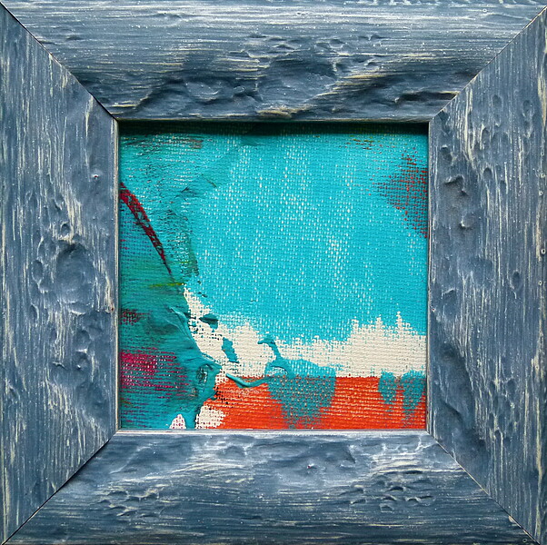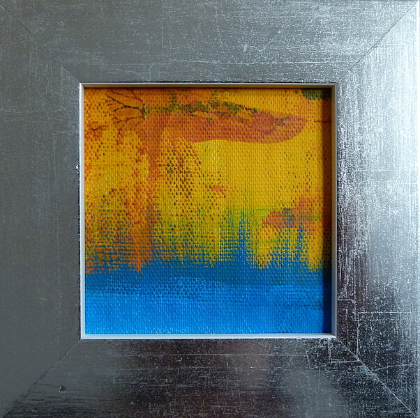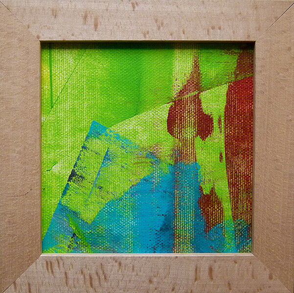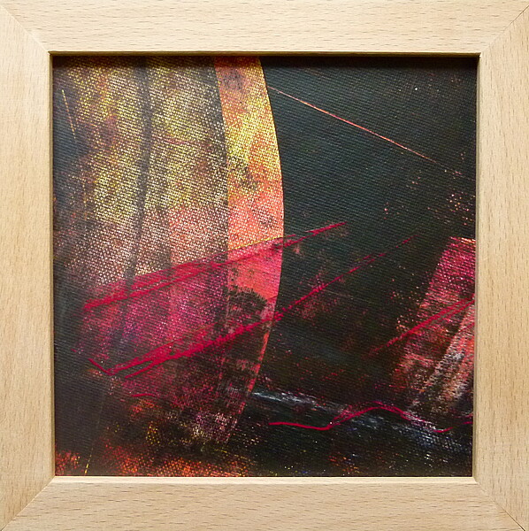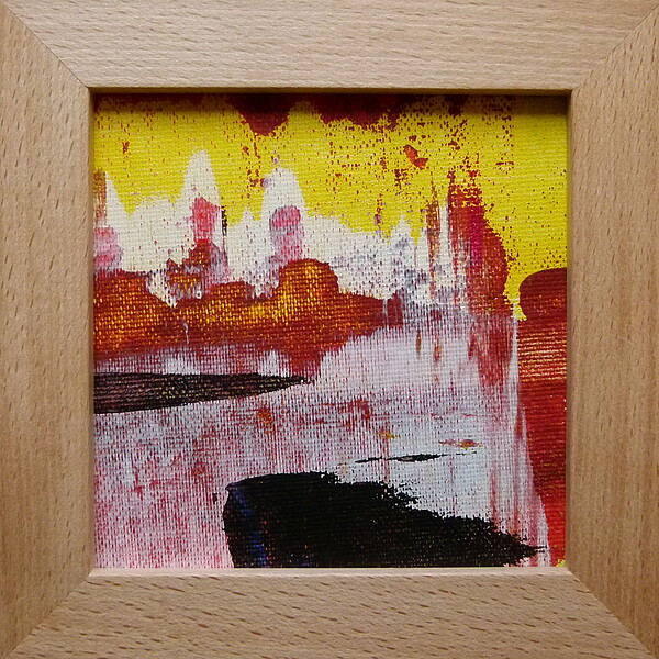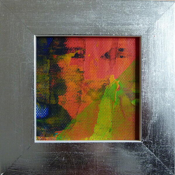Die Arbeiten "part of it - I", "part of it - 2", "part of it 3", etc. entstanden einerseits aus großen abstrakten Gemälden oder aus Teilbildern - Acryl auf Leinwand - durch die sorgfältig bewusste Auswahl der vielen Möglichkeiten der Ausschnitte entstanden sehr eigenständige kleine Werke, welche viel Freiraum für deren Interpretation lassen, obwohl manche sehr konkrete Assoziationen anbieten. Aussenmaß der Rahmen: 14x14 cm / 17x17 cm